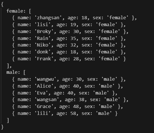 { name: 'zhangsan', age: 18, sex: "female"},